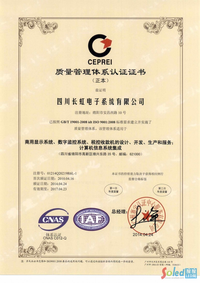 iso9001四川長虹電子系統(tǒng)有限公司(中文)