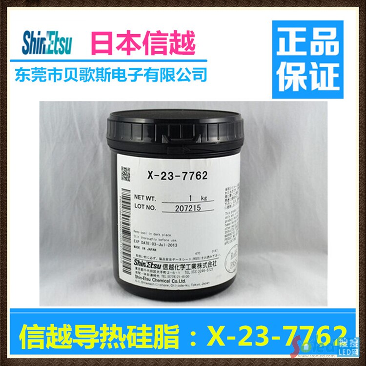 灰色,油脂狀,用于高端電子產(chǎn)品,筆記本IC芯片,模塊,散熱器等,導(dǎo)熱率4.5W/m.k. X-23-7762添加了高導(dǎo)熱性充填劑的有機(jī)硅合成油,熱傳導(dǎo)性能佳,適用于對(duì)導(dǎo)熱有非常高要求的電子元件,如大功率路燈、CPU、各種高檔產(chǎn)品之芯片與散熱片之間,服務(wù)器CPU與散熱片之間,傳熱效果極佳!X-23-7762產(chǎn)