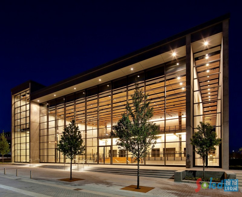 市演藝大廳是一幢社區(qū)建筑,光彩炫耀的入口吸引著人們進(jìn)入著名的達(dá)拉斯藝術(shù)區(qū)。在LED照明成為真正可行的通用照明解決方案之前,該項(xiàng)目就設(shè)計(jì)采用了39W的GEConstantColor CMH®燈作為室內(nèi)射燈以及大堂和外墻底部的洗墻燈。