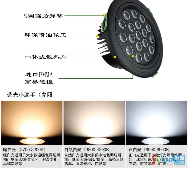 BLE-DW-C18ZD款18珠天花燈運用國外最先進(jìn)的光學(xué)設(shè)計理念,有效地實現(xiàn)光照分布和眩光控制,同傳統(tǒng)的光學(xué)相比,有效的解決了光線從燈杯外漏而產(chǎn)生眩光。此天花燈應(yīng)用于高檔購物中心、酒店、珠寶、服裝專賣店、商務(wù)中心、展覽廳、會議室、餐廳等場所的基礎(chǔ)照明和重點照明。此燈是一款專門為珠寶首飾量身定做的珠寶燈,能更好的展示出珠寶的雍容華貴、低調(diào)奢華。