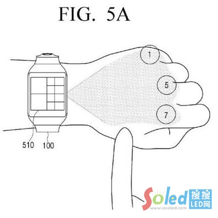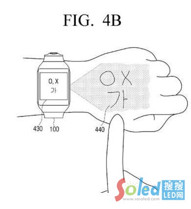 從另一張專利圖上還能看出,三星這項專利還能識別投射的動作,當(dāng)你在投射區(qū)域的手臂上寫字的時候,屏幕同樣能夠識別你的文字并顯示出來,讓你實現(xiàn)類似投影鍵盤的黑科技操作。