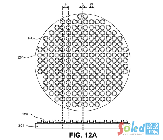 ▲Micro LED陣列結(jié)構(gòu)圖(圖片來(lái)源:USPTO)