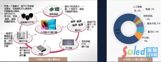如上所論述,小間距LED顯示技術作為LED技術的延伸,占其成本比重較高的元器件幾乎都是半導體技術的產(chǎn)品,包括芯片、封裝器件、驅動IC、控制系統(tǒng)(發(fā)送/接收卡)等,這些在過去數(shù)年成本均呈快速下降趨勢。