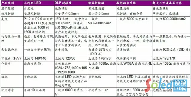 主流室內大屏幕顯示技術對比