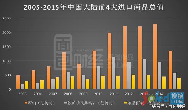 答案讓很多人意想不到:是液晶屏。2015年中國的液晶面板進口額高達397億美元,位居進口產(chǎn)品第四,僅次于集成電路、原油及鐵礦石及其精礦的進口額。