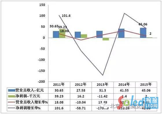 2011年~2015年華燦光電財務報表部分核心數(shù)據(jù)