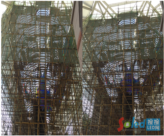軟件技術(shù)總監(jiān)王虎介紹:“該項目屏體巨大,施工現(xiàn)場有很多外部鋼架結(jié)構(gòu),這會造成視覺盲區(qū),阻擋人的視線,調(diào)試過程中畫面效果很難清晰的看到,這為調(diào)試增大難度,如果按照此前的調(diào)試方式將會十分復(fù)雜。”