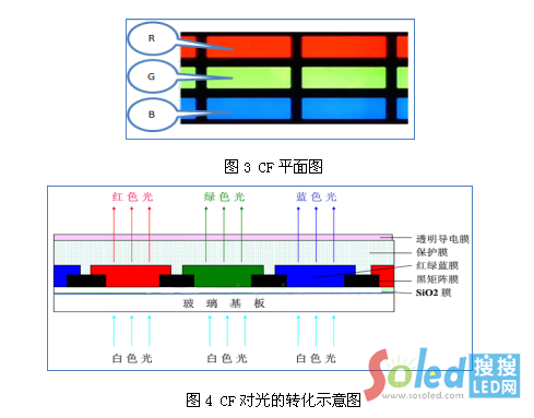 CF實際由R、G、B三種濾光片組成(其平面圖如3示),只有與濾光片光譜相近的光源才能更好的透過濾光片,此時該光源的NTSC值則越高。