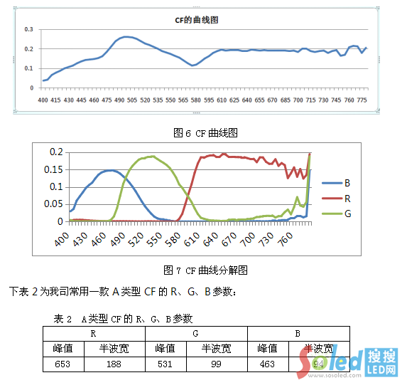 下表2為我司常用一款A(yù)類型CF的R、G、B參數(shù):