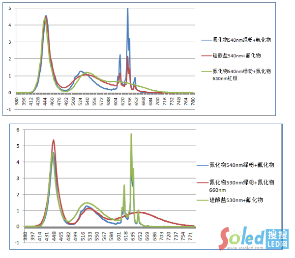 1)因半波寬窄,氟化物搭配同波段不同材質(zhì)的綠粉時,具有更高的NTSC;