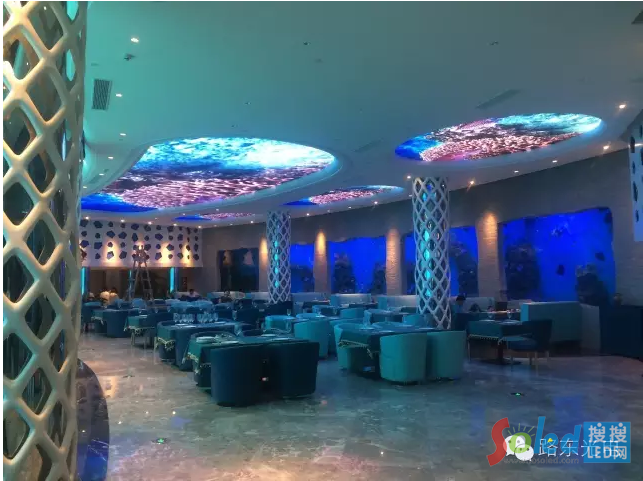 此次瑞德姆海底餐廳項目中采用【路東】LED工程屏G系列Gp3產(chǎn)品,四塊異型LED天幕屏,安裝在餐廳頂部,四塊屏不僅可獨立顯示不同畫面,還可以將四塊屏拼接起來共同顯示同一畫面,畫面細(xì)膩清晰、生動活躍。為餐廳添加一抹科技與時尚氣息。