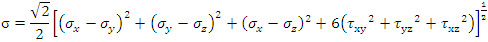 基于第四強(qiáng)度理論 Von Mises準(zhǔn)則,等效應(yīng)力用應(yīng)力張量的分量表示為: