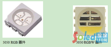 在調(diào)光調(diào)色部分應(yīng)用領(lǐng)域,人們最早采用R+G+B三芯三色的器件方案,例如常見的5050RGB器件,通過分別調(diào)控RGB的光色參數(shù)來產(chǎn)生不同的顏色變化,滿足不同的顏色需求。不過在應(yīng)用中發(fā)現(xiàn),三芯三色的RGB器件方案,混色的一致性較差,并且混合白光時白光的亮度偏低,所以部分封裝廠商開發(fā)了5050RGBW四芯四色器件方案。
