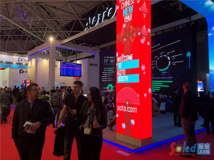 奧拓電子作為LED顯示技術領域上的引領者,始終保持著技術上的先進性與獨創(chuàng)性,在此次ISE展會上,奧拓電子重磅推出全新集成式模塊化LED技術,采用奧拓電子創(chuàng)新的封裝技術,燈面防碰撞,表面可擦洗,滿足了LED小點間距產(chǎn)品在商業(yè)顯示發(fā)展上的兩大重要需求,為行業(yè)技術發(fā)展提供了新思路。此種新型模塊化LED箱體外觀優(yōu)雅、風格靈動,獲得“一種高清晰度LED顯示屏及其超小點間距貼片式LED復合燈”等多項國內(nèi)外自主發(fā)明專利,表面顯示不反光、無色差以及可現(xiàn)場維修處理,是目前行業(yè)中最新最炫的技術,獲得大量專業(yè)客戶好評。