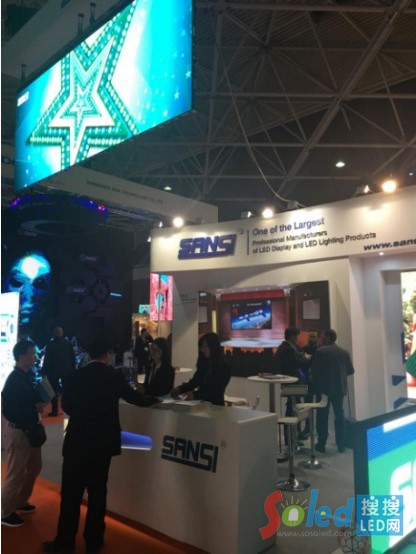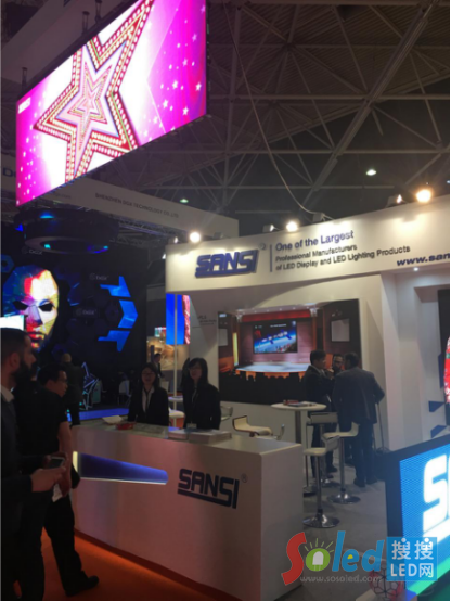 其中,位于8-N340展位的上海三思電子工程有限公司作為國內(nèi)LED顯示屏、LED照明與系統(tǒng)解決方案提供商的優(yōu)秀代表在新年伊始大秀了一把“中國制造”的風采。除去P1.667小間距及P3.91室內(nèi)租賃屏、P4.8戶外租賃屏的精彩展示外,還帶來了P12.5室外球場屏、P4室內(nèi)櫥窗屏等新品,成為LED顯示領域的人氣展位。
