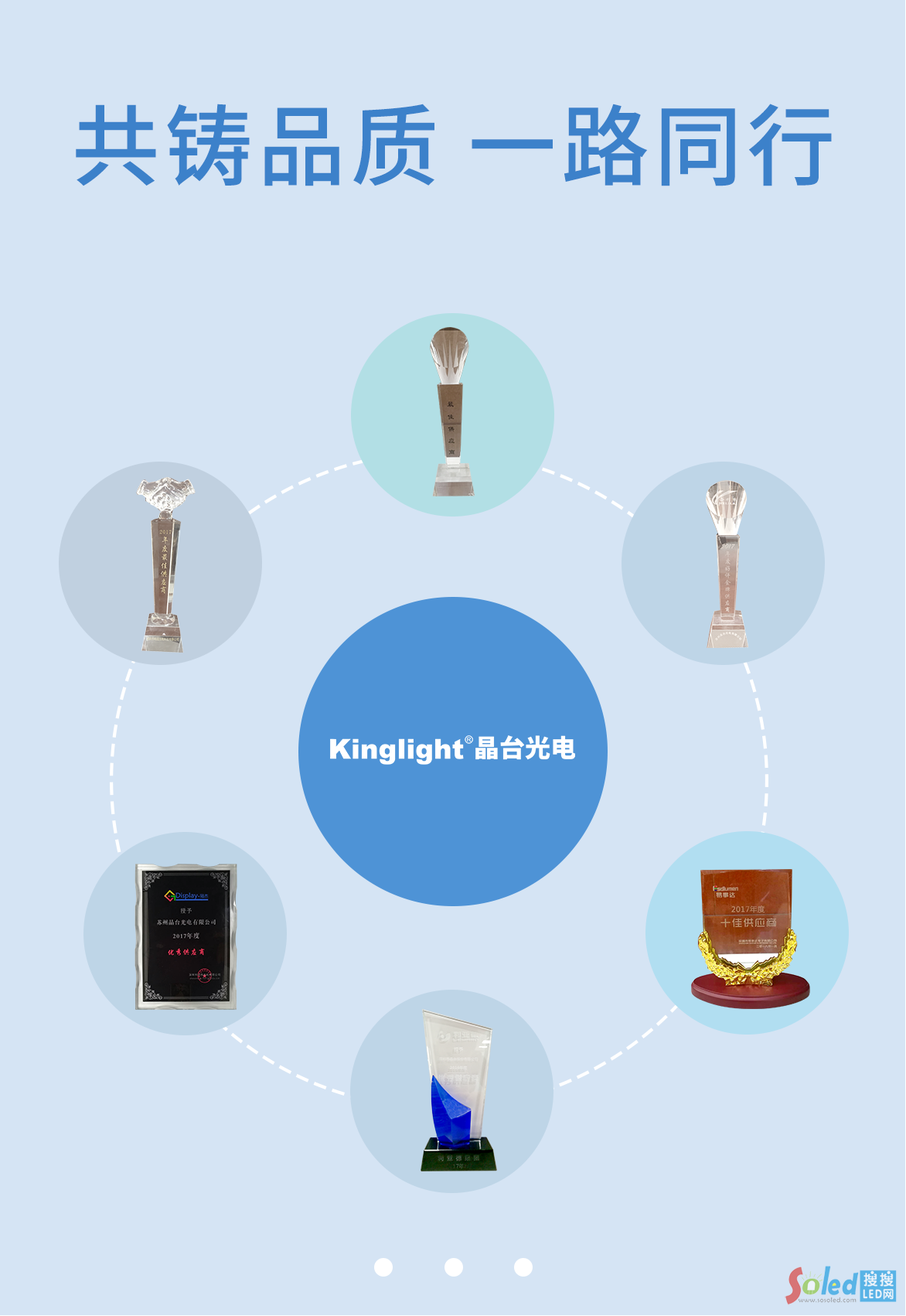 在LED行業(yè)中,晶臺產(chǎn)品被稱為品質(zhì)的代名詞,踐行匠心專研、嚴控品質(zhì)、真誠服務(wù)。正是因為這份堅持,晶臺光電自成立以來,載譽無數(shù),除了獲得榮耀的光環(huán)外,更看重的則是堅守背后客戶對晶臺的認可。