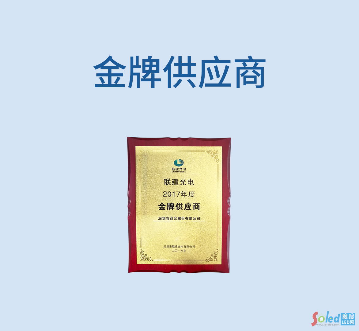 聯(lián)建光電授予晶臺光電“金牌供應(yīng)商”榮譽