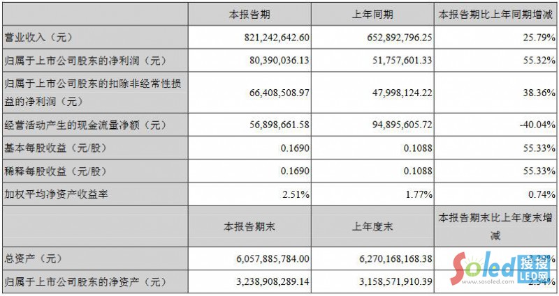 國星光電2018年第一季度實現(xiàn)營業(yè)收入8.21億元,同比增25.79%;實現(xiàn)歸屬于上市公司股東的凈利潤8,039萬元,同比增長55.32%,主要系業(yè)務(wù)規(guī)模擴大銷售收入增加,以及母子公司均不斷優(yōu)化產(chǎn)品結(jié)構(gòu),提升高附加值產(chǎn)品的比重所致。