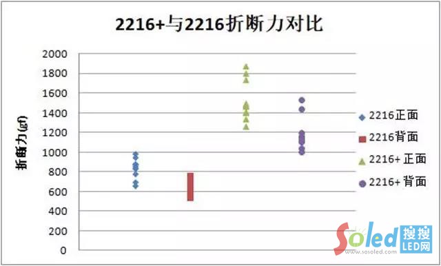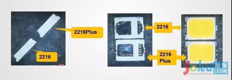 2216Plus封裝形式不變,尺寸上有微小的變動,底部焊盤不變,終端產(chǎn)品可等量替換。在強度方面,產(chǎn)品強度得到加強。亮度方面,原規(guī)格亮度不變,新規(guī)可做更高亮度。以下為綜合性能對比圖。