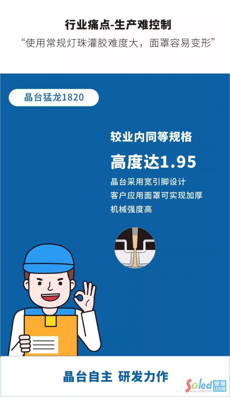 針對(duì)戶外高密,晶臺(tái)光電在研發(fā)前期便儲(chǔ)備多項(xiàng)專利,從亮度、對(duì)比度及應(yīng)用防護(hù)性等角度打破傳統(tǒng)、治愈痛點(diǎn)。晶臺(tái)作為高端LED顯示器件品牌,不斷深入專研細(xì)分領(lǐng)域,佳作頻出。此次推出猛龍1820 必將再掀戶外新風(fēng)潮,再展封裝制造新高度。