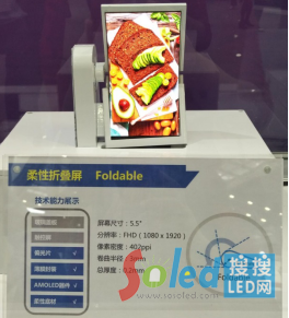此外,AMOLED柔性其他應(yīng)用形態(tài)如卷曲屏、折疊屏等也都集中亮相。卷曲屏采用了卷軸式設(shè)計(jì),其厚度僅0.2mm,輕薄如紙,可全部卷收至卷軸上,卷曲屏的開(kāi)發(fā)將柔性屏輕薄、可彎可卷的特性體現(xiàn)到極致。在展會(huì)現(xiàn)場(chǎng)和輝光電還展出了一款5.5寸的AMOLED折疊屏,屏幕厚度僅為0.2mm,彎折半徑為3mm,可完全對(duì)折,可以說(shuō)是真正意義上實(shí)現(xiàn)了手機(jī)折疊的愿景,也為下一代折疊類手機(jī)的實(shí)現(xiàn)引領(lǐng)了方向。