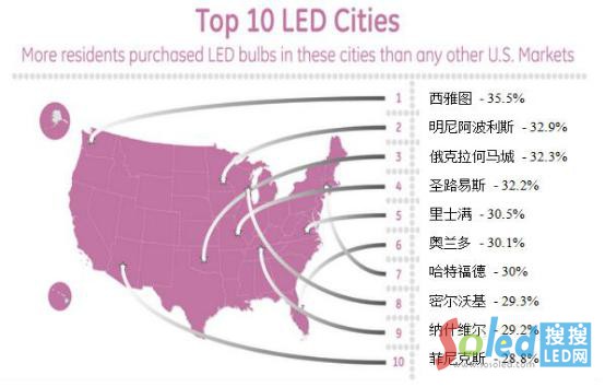 美國LED采用率排名前十的城市
