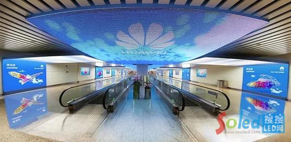 其中到達廳的創(chuàng)意通廊呈彎曲狀態(tài)顯示,通過個性化定制而成,畫面連續(xù)無拼縫,其完美畫質(zhì)保證了廣視角內(nèi)畫面不發(fā)生偏色現(xiàn)象。