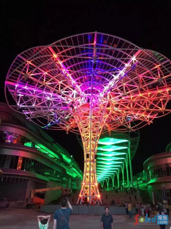 在西安高新區(qū)唐城墻遺址公園,目前國內(nèi)戶外首創(chuàng),應(yīng)用12臺高端工業(yè)機器人,三維立體舞動LED顯示屏,20多萬顆LED全彩點光源,在多棟高層建筑立面上,一場情境聲融的動態(tài)燈光展演秀正在上演。