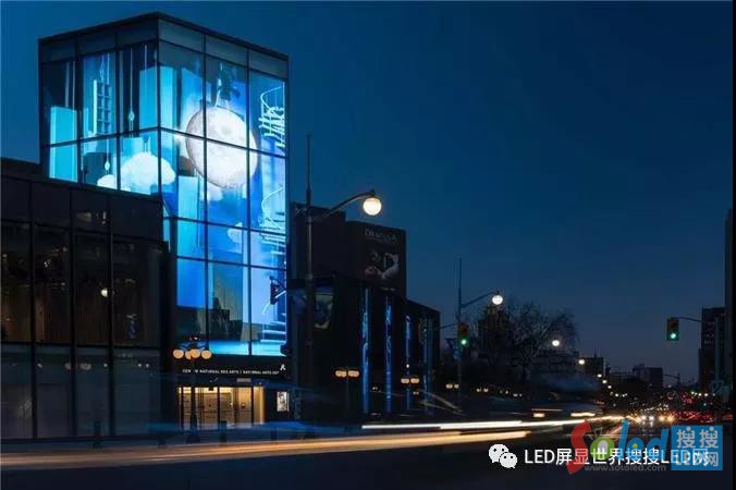 事實(shí)上,行業(yè)內(nèi)不乏LED透明屏在玻璃幕墻應(yīng)用的案例,如奧蕾達(dá)承建的溧陽上河城全球最大LED透明屏,總面積達(dá)951平方米,360°全方位透明顯示黑科技,高通透,高清畫面顯示。在國(guó)外,一個(gè)名為Kipnes Lantern的三層樓高的LED顯示屏項(xiàng)目也在位于渥太華的加拿大國(guó)家藝術(shù)中心亮相。
