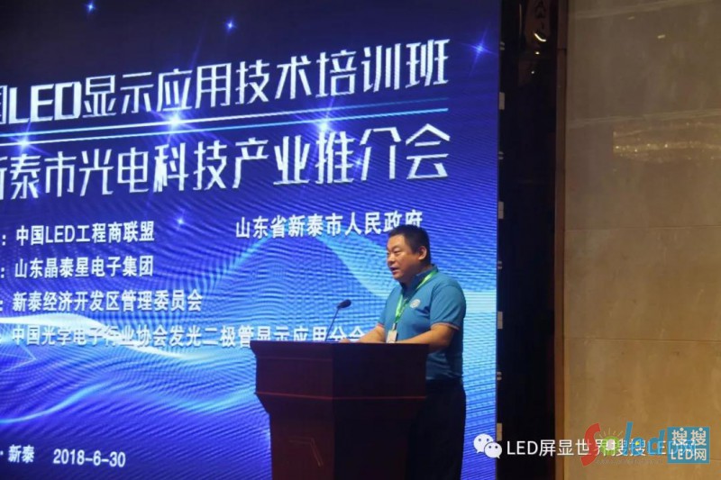 2018年6月30日,中國共產(chǎn)黨建黨97周年之際,由中國LED工程商聯(lián)盟、山東省新泰市人民政府主辦,新泰經(jīng)濟(jì)開發(fā)區(qū)管理委員會(huì)承辦,山東晶泰星電子集團(tuán)協(xié)辦,中國光學(xué)光電子行業(yè)協(xié)會(huì)LED顯示應(yīng)用分會(huì)指導(dǎo)的“第五期全國LED顯示應(yīng)用技術(shù)培訓(xùn)班”暨新泰市光電科技產(chǎn)業(yè)推介會(huì),在山東泰安新泰市成功舉行。新泰市副市長桑民,新泰經(jīng)濟(jì)開發(fā)區(qū)管理委員會(huì)領(lǐng)導(dǎo),中國光協(xié)LED顯示應(yīng)用分會(huì)理事長關(guān)積珍、秘書長洪震,中國LED工程商聯(lián)盟名譽(yù)會(huì)長山東晶泰星電子集團(tuán)董事長袁信成,中國LED工程商聯(lián)盟會(huì)長劉和清、秘書長曹立新,授課專家老師和聯(lián)盟會(huì)員單位代表及業(yè)內(nèi)經(jīng)銷商、工程商、廠商代表,等200多人參與了本次培訓(xùn)班暨推介會(huì)的開幕式,行業(yè)媒體《LED屏顯世界》記者也對(duì)本次活動(dòng)進(jìn)行了全程跟蹤報(bào)道。