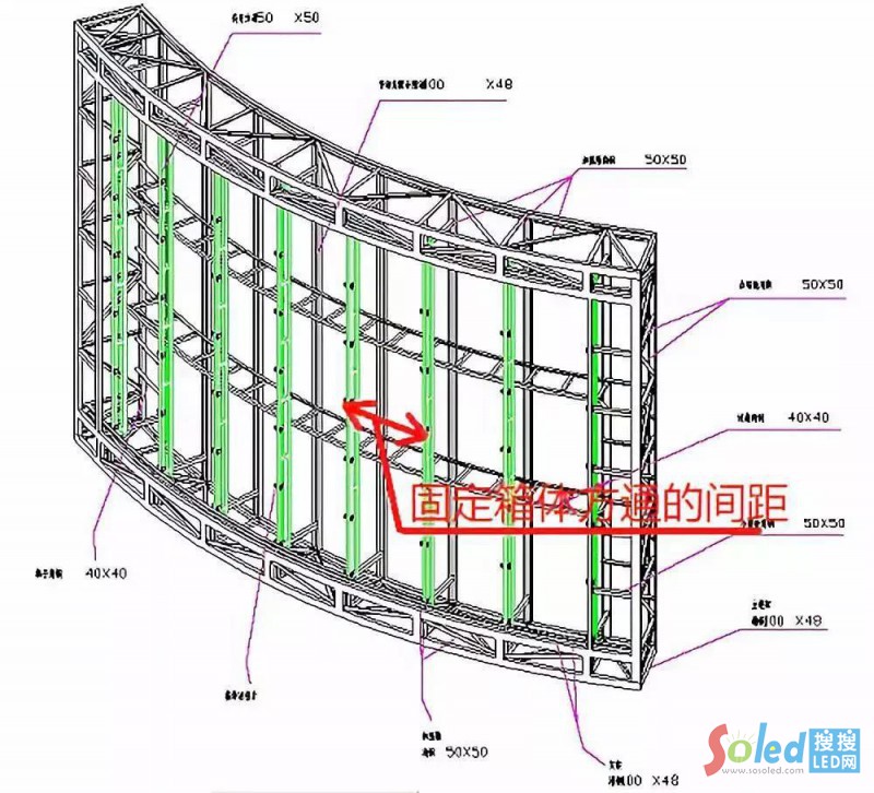 家在設(shè)計(jì)鋼結(jié)構(gòu)的時(shí)候一般都是按照顯示屏橫向間距確定固定箱體尺寸的。例如使用P16的顯示屏,其模組的長(zhǎng)度(寬度)尺寸是256mm,那么箱體設(shè)計(jì)的長(zhǎng)度(寬度)尺寸就是768mm或者1024mm,這樣得到結(jié)果就是固定箱體的方通間距是768mm或者1024mm。