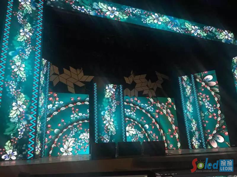 整體舞臺背景由12塊獨立的LED顯示屏搭建而成,可通過對現(xiàn)場畫面的控制達到和諧,從不同的視角領(lǐng)略不同的藝術(shù)美感。