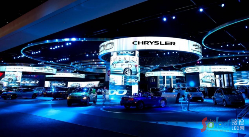 在2016屆北美國際汽車展(NAIAS)中,奧拓立翔的InnoPix II顯示屏的使用總量超過1500塊。在展位定制的LED屏幕,采用了圓形元素打造了圓柱屏,同時(shí)周圍環(huán)繞著同心環(huán)。多個(gè)弧形拼接帶來更寬的視野和更大的顯示面積,建立了一個(gè)令人印象深刻的展示活動空間。流光溢彩的奧拓立翔顯示屏為頂級汽車品牌呈現(xiàn)出前所未有的震撼視覺體驗(yàn),極大豐富了高端汽車工業(yè)的品牌魅力。菲亞特克萊斯勒汽車(FCA)表示對車展的整體外觀非常滿意,優(yōu)秀的解決方案讓這一切都在視覺平面上融合在了一起,同時(shí)對奧拓立翔顯示屏的穩(wěn)定性也十分認(rèn)可。