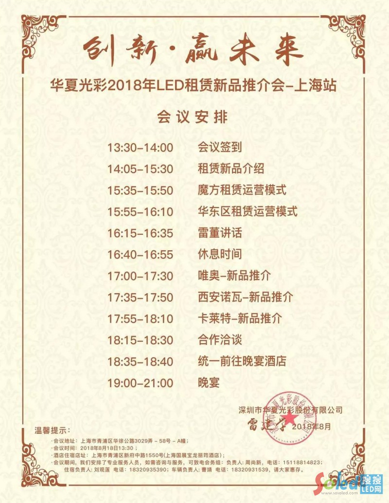華夏光彩2018年LED租賃新品推介會-上海站會議安排