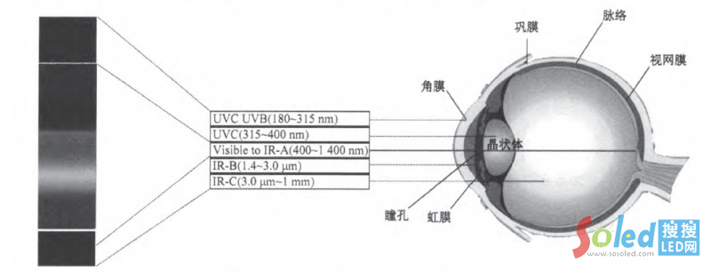 圖1:不同波段的光在人眼組織中的透過(guò)情況