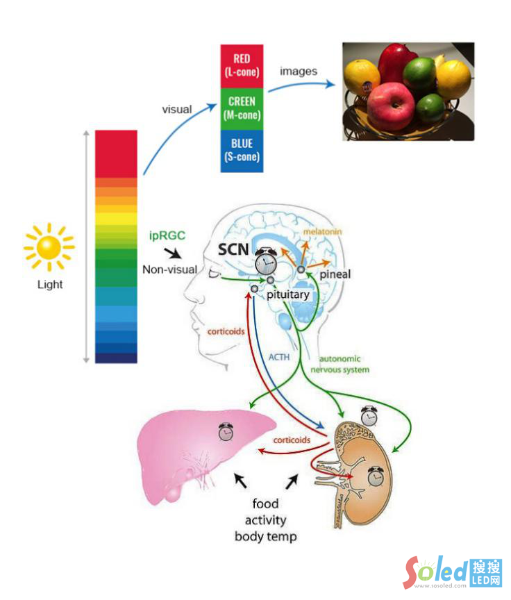 圖2:人眼的視覺(jué)和非視覺(jué)生物效應(yīng)通道