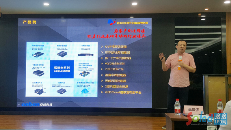 成立至今,仰邦科技一直致力于LED控制器、視頻處理設備、iLEDCloud信息發(fā)布云平臺三大業(yè)務,為LED顯示屏應用領域提供完整的解決方案。是LED控制器領域首家新三板掛牌企業(yè)。高慶偉表示,仰邦人一直以“為客戶創(chuàng)造價值,致力打造基礎市場的行業(yè)爆品”作為自身的產(chǎn)品研發(fā)宗旨,為應用客戶最實用性價最高的產(chǎn)品。隨后仰邦科技董事長高慶立介紹了旗下主打產(chǎn)品,并著重介紹當前所推的OVP視頻處理器,他表示,OVP將全線爆發(fā),而且受到市場的青睞。高慶偉還表示“細分化,定制化,集成化,網(wǎng)絡化平臺化”將是未來控制系統(tǒng)發(fā)展趨勢。