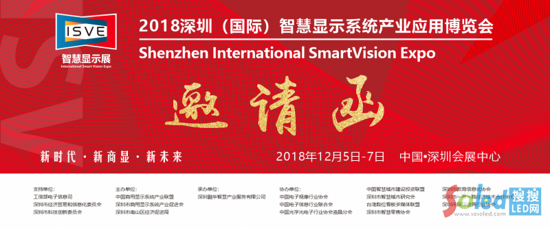 12月5-7日,由深圳市商用顯示系統(tǒng)產業(yè)促進會主辦的【2018深圳(國際)智慧顯示系統(tǒng)產業(yè)應用博覽會】(簡稱:ISVE智慧顯示展) 將于深圳會展中心隆重召開。