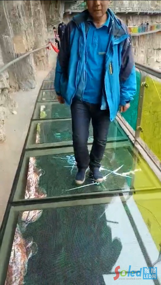 在許多景區(qū)棧道上被安裝了LED玻璃顯示屏,人走在上面會出現(xiàn)玻璃炸裂的圖像和玻璃碎裂的聲響,增加娛樂性的同時還讓人大感刺激和新奇!