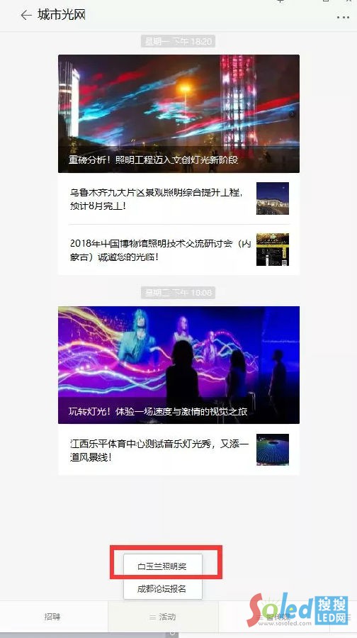 步驟(2):點(diǎn)擊菜單欄活動(dòng),進(jìn)入“白玉蘭照明獎(jiǎng)”