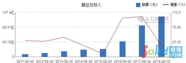 10月20日,蘇州東山精密制造股份有限公司(以下簡稱“東山精密”)公布了2018 年第三季度報告。報告顯示,第三季度公司營收為61.95億元,比上年同期增長43.62%,歸屬于上市公司股東的凈利潤4.17億,同比增長66.07%;前三季度營業(yè)收入134億元,同比增長28.49%;歸屬于上市公司股東的凈利潤6.77億元,同比增長82.77%。