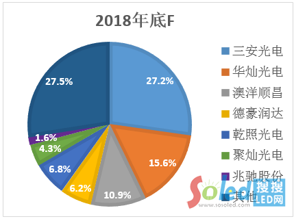 事實上,聚燦光電所處的LED芯片行業(yè)競爭激烈程度正持續(xù)加強,各大芯片企業(yè)都在大力擴產(chǎn)。GGII數(shù)據(jù)顯示,2018年新擴產(chǎn)芯片廠MOCVD將逐漸到位,預計2018年新增MOCVD 達到300臺以上,新增產(chǎn)能145萬片/月,大量MOCVD的產(chǎn)能將集中在2019年釋放,2019年新增產(chǎn)能345萬片/月。