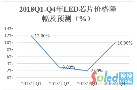 產(chǎn)能的集中化及供需關系的變化促使整個整個芯片行業(yè)進入價格新周期。GGII表示,2018年LED芯片企業(yè)的稼動率開始下滑,LED芯片價格將持續(xù)下降,進而導致LED芯片企業(yè)的毛利率回歸合理水平。不過,2018年第四季度隨著芯片新增產(chǎn)能的釋放,芯片價格承壓,降價幅度變大。