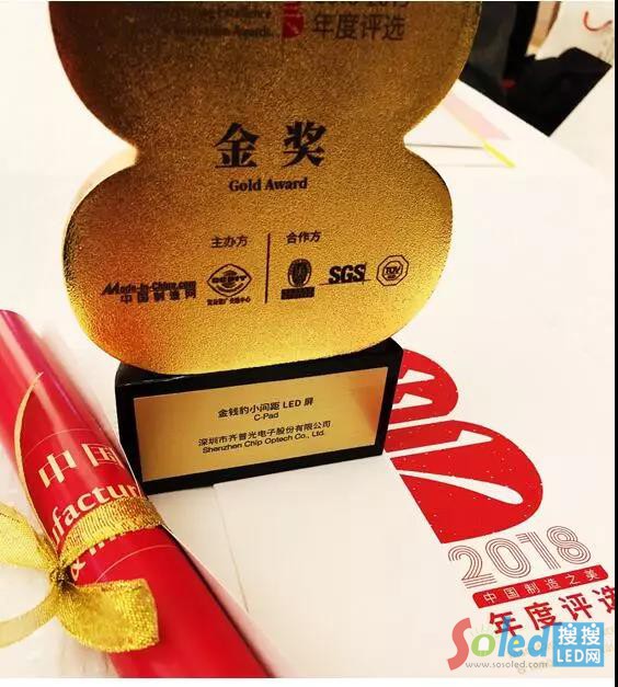 2018中國制造之美頒獎—齊普光電C-Pad系列小間距產(chǎn)品獲金獎