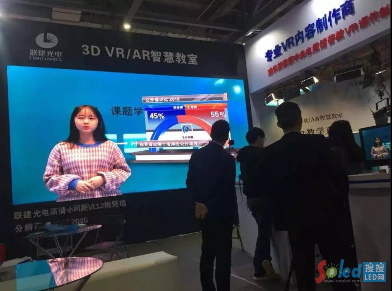本次展會(huì)聯(lián)建光電攜PH1.2小間距LED顯示屏與VR(虛擬與現(xiàn)實(shí))技術(shù)相結(jié)合精彩亮相,展位號(hào)為A1036。展會(huì)期間,聯(lián)建光電小間距LED顯示屏結(jié)合VR技術(shù)打造的“智慧”課堂之旅,用超4K的分辨率(4096*2016)和超大尺寸的顯示畫(huà)面,顯著提升了VR技術(shù)的體驗(yàn)度,吸引了許多觀眾參與其中,大家對(duì)這一新穎的教學(xué)方式表現(xiàn)出極大的興趣和好評(píng)。