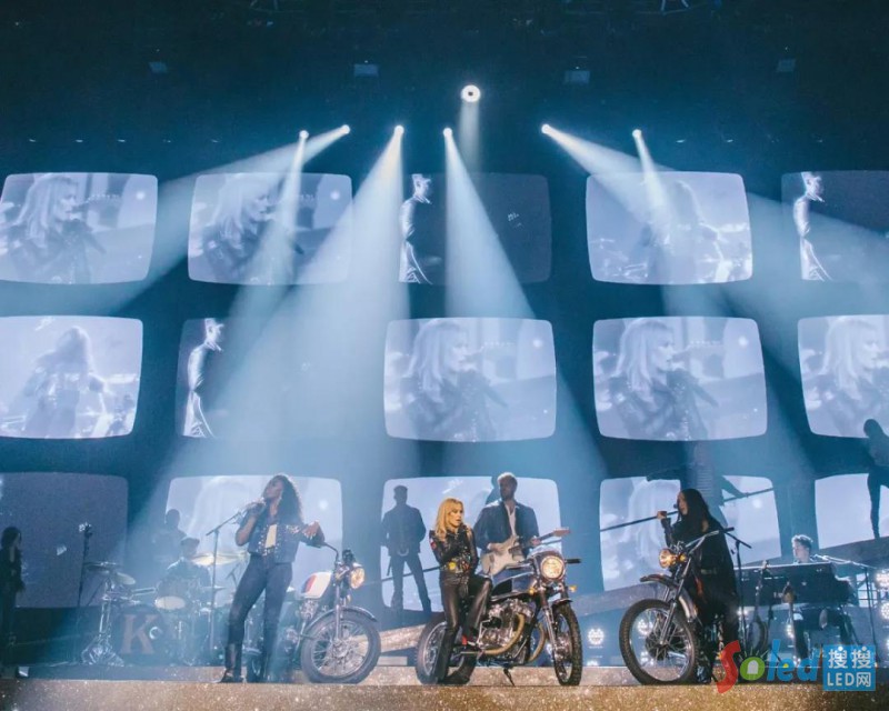 為了提高觀眾的視覺享受,CT不僅給舞臺設(shè)計了一個獨特的3D效果外觀,還使用了206.6平方米的雷迪奧MC7(魔方系列)顯示屏,組成五個1.2米高的屏幕。這不但為演唱會增加了層次感,而且觀眾也可以從多角度觀看凱莉·米洛的精彩表演,尤其是那些坐在競技場兩側(cè)的觀眾。