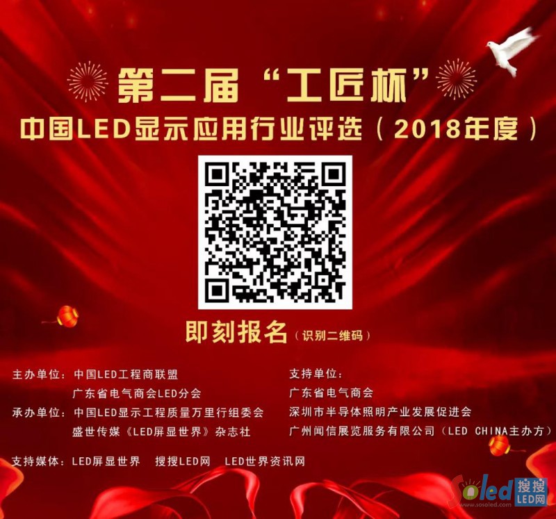 本著“提高LED顯示屏行業(yè)的知名度,推進(jìn)企業(yè)品牌建設(shè),打造一批具有良好質(zhì)量信譽(yù)和超強(qiáng)競(jìng)爭(zhēng)力的企業(yè)品牌及LED優(yōu)質(zhì)顯示工程這一宗旨”,第二屆“工匠杯”中國(guó)LED顯示應(yīng)用行業(yè)評(píng)選活動(dòng)(2018年度),即日正式啟動(dòng)。