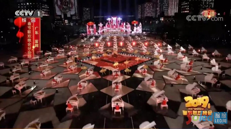 本屆春晚深圳分會場廣場放置了將近150臺白色鋼琴,每一架鋼琴下是由64塊黑色玻璃LED屏幕組成的平臺,由晶臺LED器件、光祥制造的LED屏幕在晚會上光芒四射,大放異彩,光影和音樂的組合為觀眾帶來不同凡響的視聽盛宴,為全球觀眾呈現(xiàn)了完美的舞臺視覺效果。呼應晚會“奮進新時代、歡度幸福年”主題,充滿現(xiàn)代科技感的營造出歡樂祥和、喜氣洋洋的新春氛圍,為全球華人獻上一道豐盛的年夜大餐。