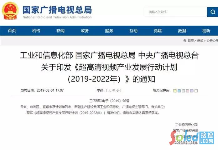 核心提示:日前,工業(yè)和信息化部、國家廣播電視總局、中央廣播電視總臺聯(lián)合印發(fā)了《超高清視頻產業(yè)發(fā)展行動計劃(20192022年)》。預計到2022