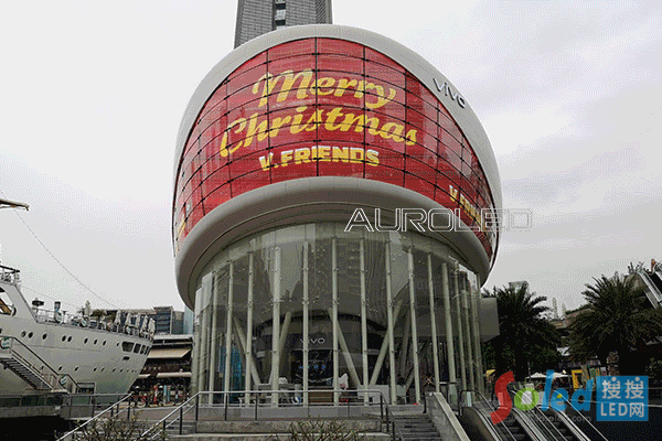 而奧蕾達為VIVO Lab概念店量身打造的高端定制三維曲面異形LED透明屏正是位于其上層玻璃幕墻之上,通透度高,透明屏幕與玻璃幕墻完美融合,提高了概念店整體的科技感和互動性。透明屏搭配VIVO酷炫時尚的影片,起到了很好地宣傳效果,顧客從遠處就能看到醒目的廣告,引流聚客。